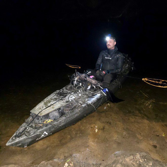 As the paddler neared our sandbar, we could make out a kayak loaded with gear but obviously not camping gear. Now my mind switched to speculating about a covert CIA operation. The paddler came closer and, breaking the spell, shouted, “I hope you don’t mind if I night dive here. I’m looking for artifacts.” Relieved but still puzzled we said OK. For the next hour we watched him scuba dive with bright lights in the river running near our campsite.