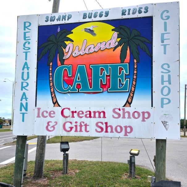 My son John and I met for breakfast at the Island Café in Everglades City. John and I have done many paddling trips together. In his 1982 travelogue Blue Highways, the author William Least Heat-Moon describes his system for evaluating the quality of diners based on the number of wall calendars hanging in them. At the Island Café I only saw one wall calendar which according to Heat Moon would translate to “preprocessed food.” I had the grouper and grits, and John had the Fisherman’s Breakfast. I would rate the food as 3 calendars – “Guaranteed good farm-boy breakfasts”. See the Appendix for Heat Moon’s diner rating system.