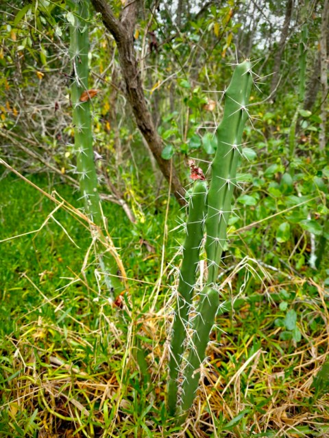 We landed at a small beach, the island’s only access. Alec pointed out the interesting vegetation on the island. This is Acanthocereus tetragonus. Common names include barbed cactus and triangle cactus. Young stems of the cactus can be cooked or eaten raw. It is sometimes planted as a living fence. The barbed cactus is native to the coastal hammocks and sandy coastal habitats of central and southern Florida.