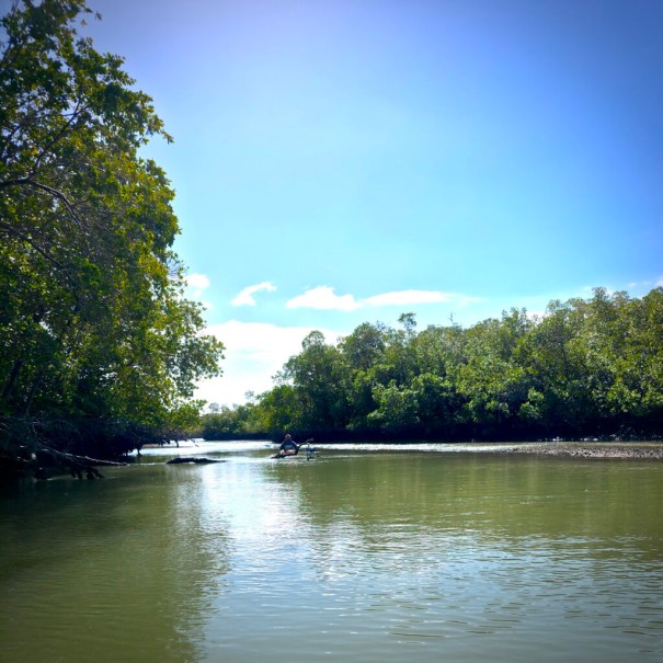 The tidal flows get very strong in narrow areas where the mangrove islands are close to each other. It is hard to tell from this picture but the current is so strong that in places it feels like you are paddling down a river with class 1 rapids.