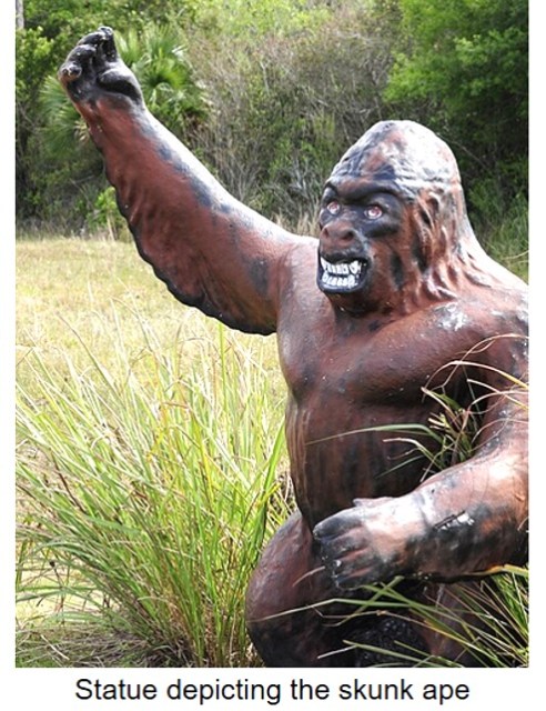 One mammal we didn’t see was a skunk-ape. The mythical skunk-ape is a large and hairy human-like creature purported to inhabit the swamps in southeastern Florida. It is often called the “cousin” of Bigfoot. In 1977, a Florida legislative bill was proposed to make it illegal to “take, possess, harm or molest anthropoids or humanoid animals.”