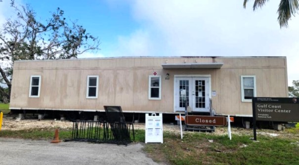 Our starting point was near the Gulf Coast Visitor Center. The original Center was destroyed by Hurricane Irma in 2017. The temporary replacement was leveled by Hurricane Ian in 2022. This is a picture of the old center.