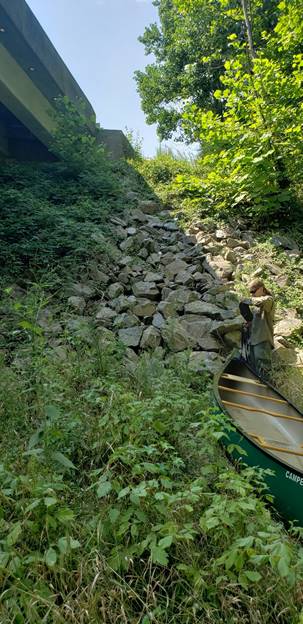 The possible put-in at the bridge (see below) hasn’t gotten any easier than it was 5 years ago. John and I figured there must be an easier way.