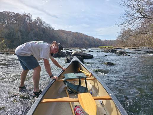 My older son John was staying in Durham in November so I thought it might be fun to try this same stretch 5 years later. There has been very little rainfall this fall in NC but in many spots in the Deep River the water level is “always at minimum”. The suggested water gauge for this trip is 30 miles upstream so we figured we would just drive over an eyeball the water level and take our chances.