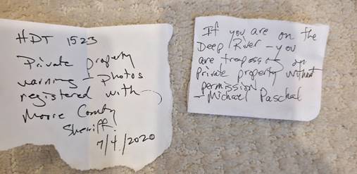 When I parked next to the Glendon-Carthage Road bridge 5 years ago I got a note on my windshield (see below). To avoid the same fate this time I parked a quarter mile away on a side road but got the same result (see below).