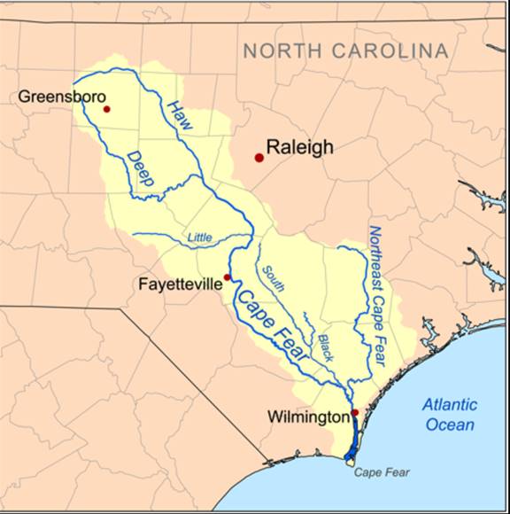 The Deep River is a tributary of the Cape Fear River, approximately 125 miles long. The river is habitat to two federally-endangered species, the Cape Fear shiner, a critically endangered minnow, and the Atlantic Pigtoe, an endangered mussel. The Rocky River enters the Deep River at the White Pines Nature Preserve. The Deep River joins the Haw River at Mermaid Point near Moncure to form the Cape Fear River.